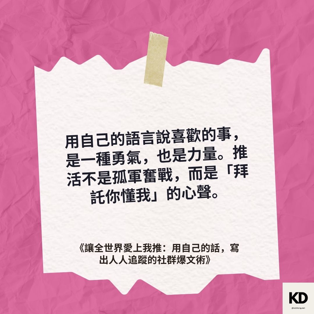 「用自己的語言說喜歡的事,是一種勇氣,也是力量。推活不是孤軍奮戰,而是「拜託你懂我」的心聲。」