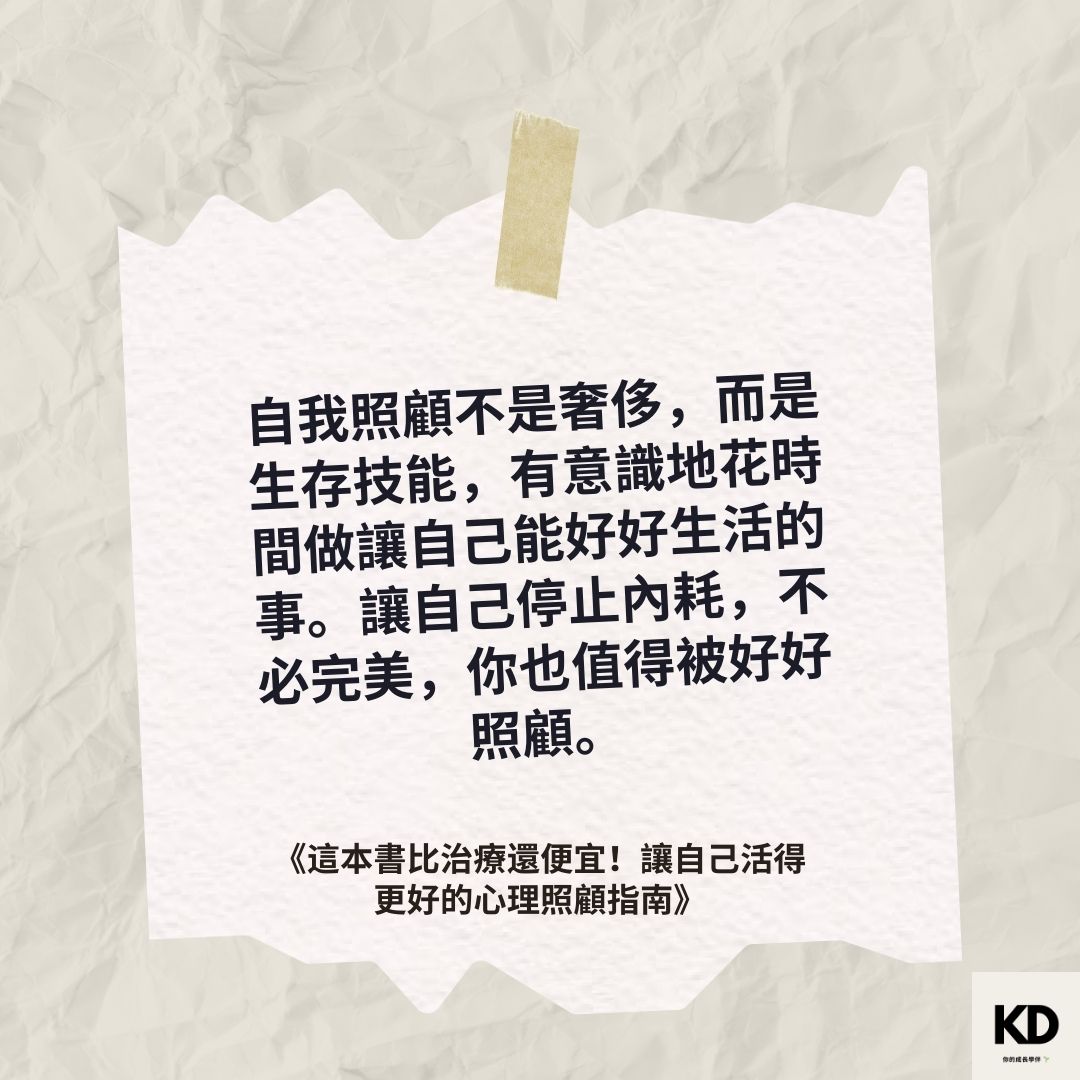 「自我照顧不是奢侈,而是生存技能,有意識地花時間做讓自己能好好生活的事。讓自己停止內耗,不必完美,你也值得被好好照顧。」