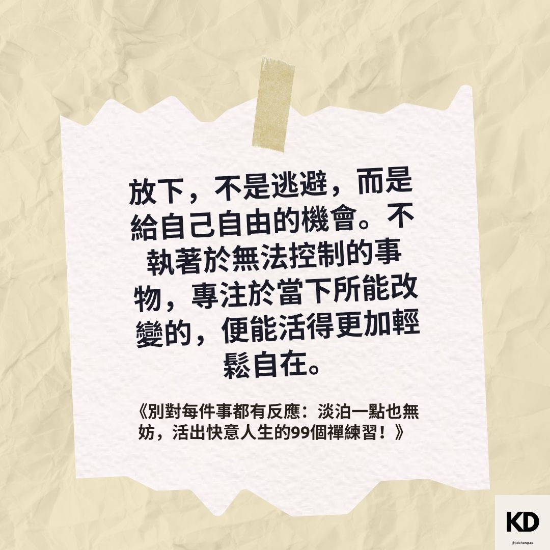 「放下,不是逃避,而是給自己自由的機會。不執著於無法控制的事物,專注於當下所能改變的,便能活得更加輕鬆自在。」