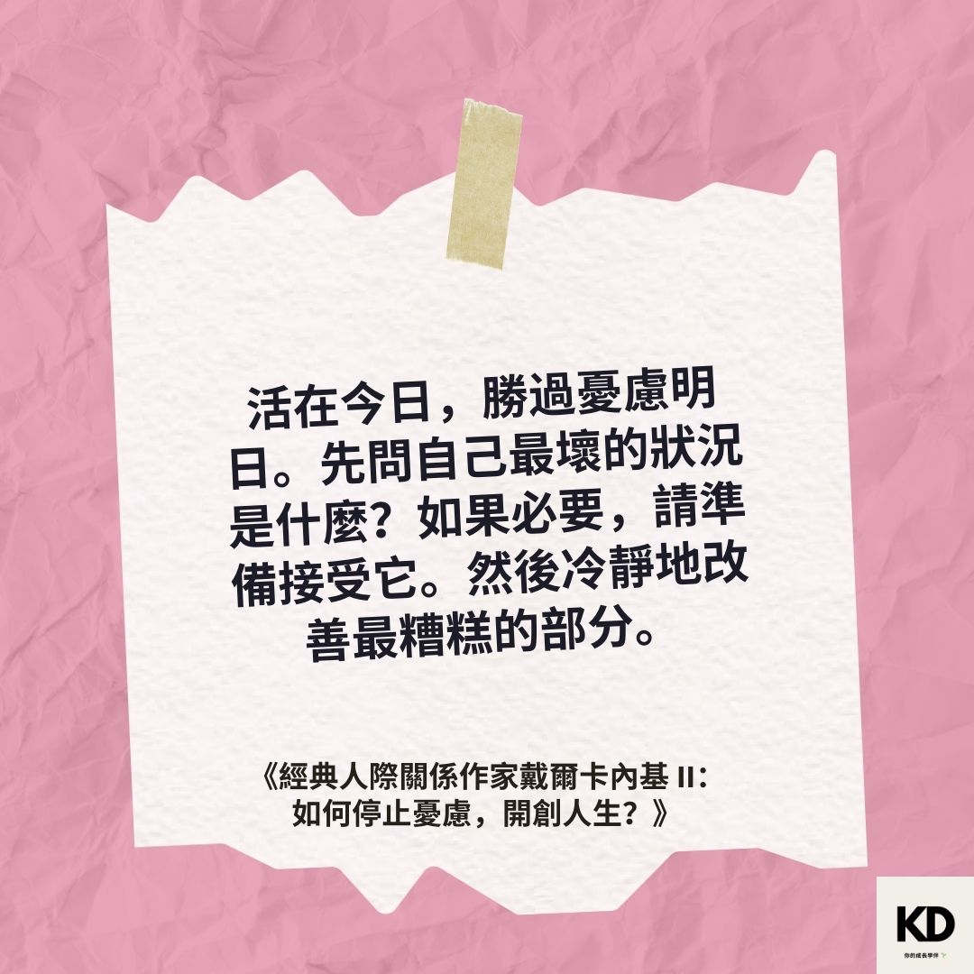 「活在今日,勝過憂慮明日。先問自己最壞的狀況是什麼?如果必要,請準備接受它。然後冷靜地改善最糟糕的部分。」