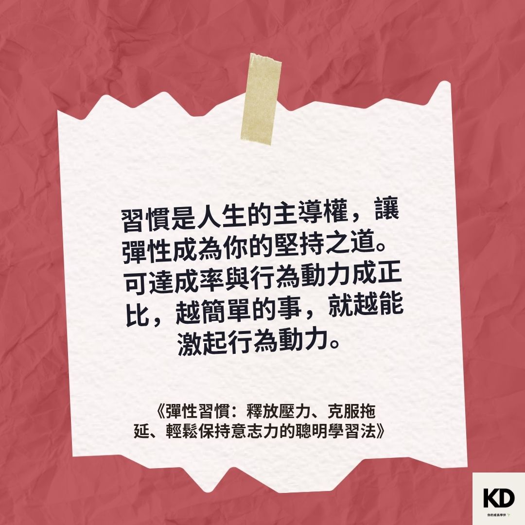 「習慣是人生的主導權,讓彈性成為你的堅持之道。可達成率與行為動力成正比,越簡單的事,就越能激起行為動力。」